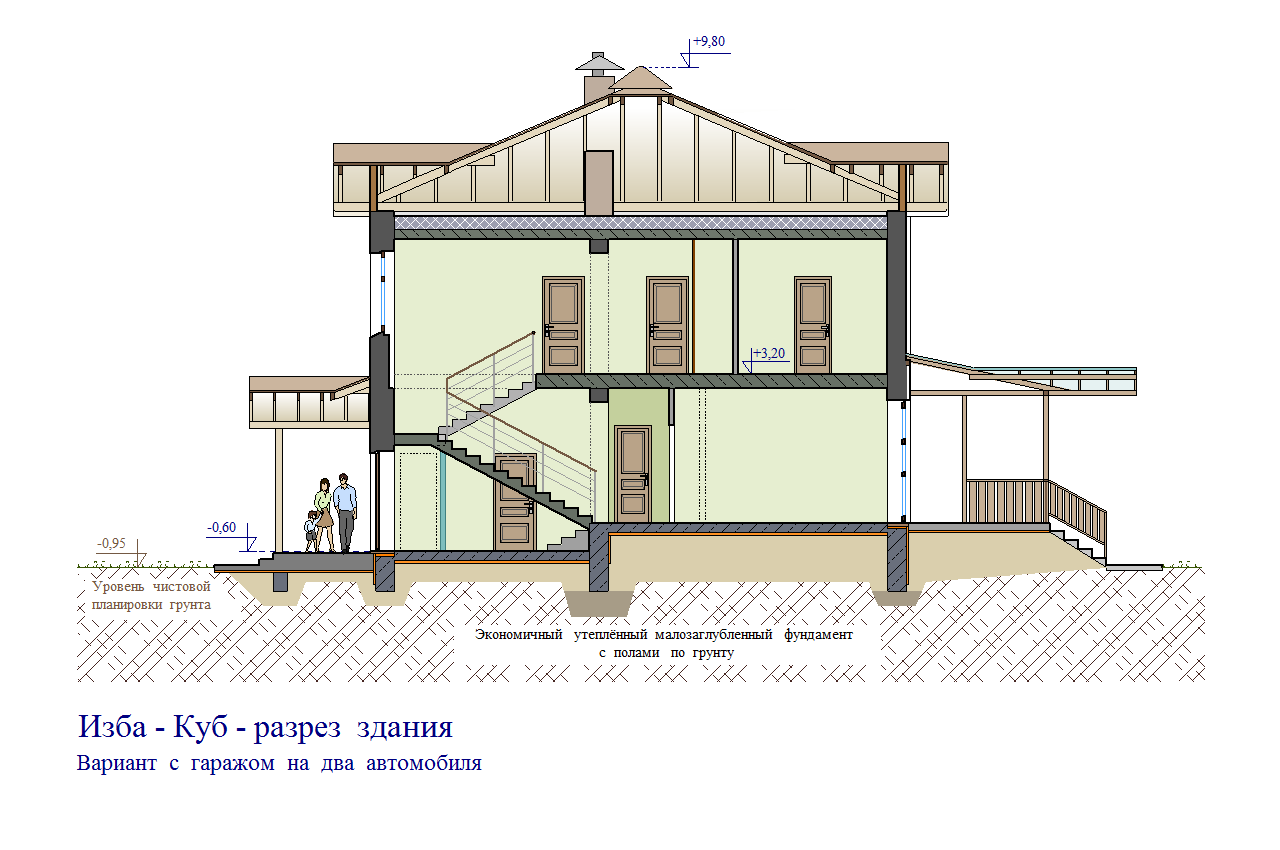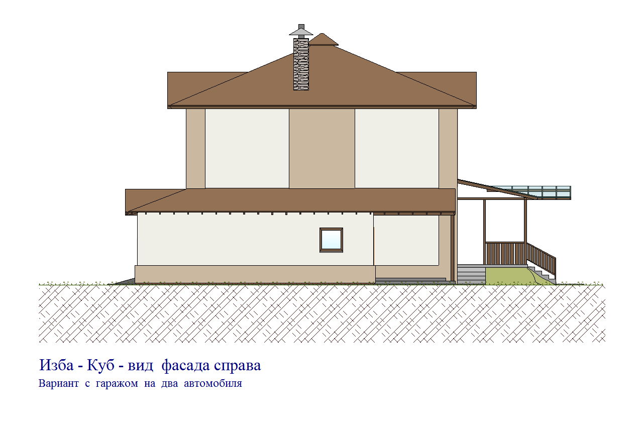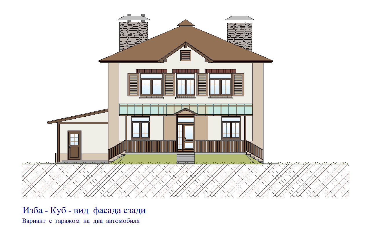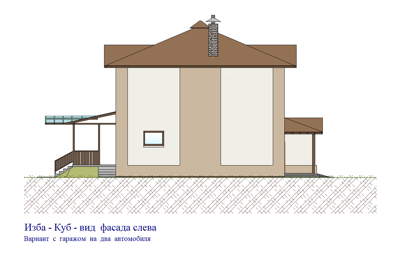Версия проекта в которой за счёт переноса технических помещений на место жилой зоны первого этажа высвобождается дополнительная площадь для ещё одного машиноместа в гараже. Актуально для любителей большого количества авто-мототехники или для создания в доме мастерской.