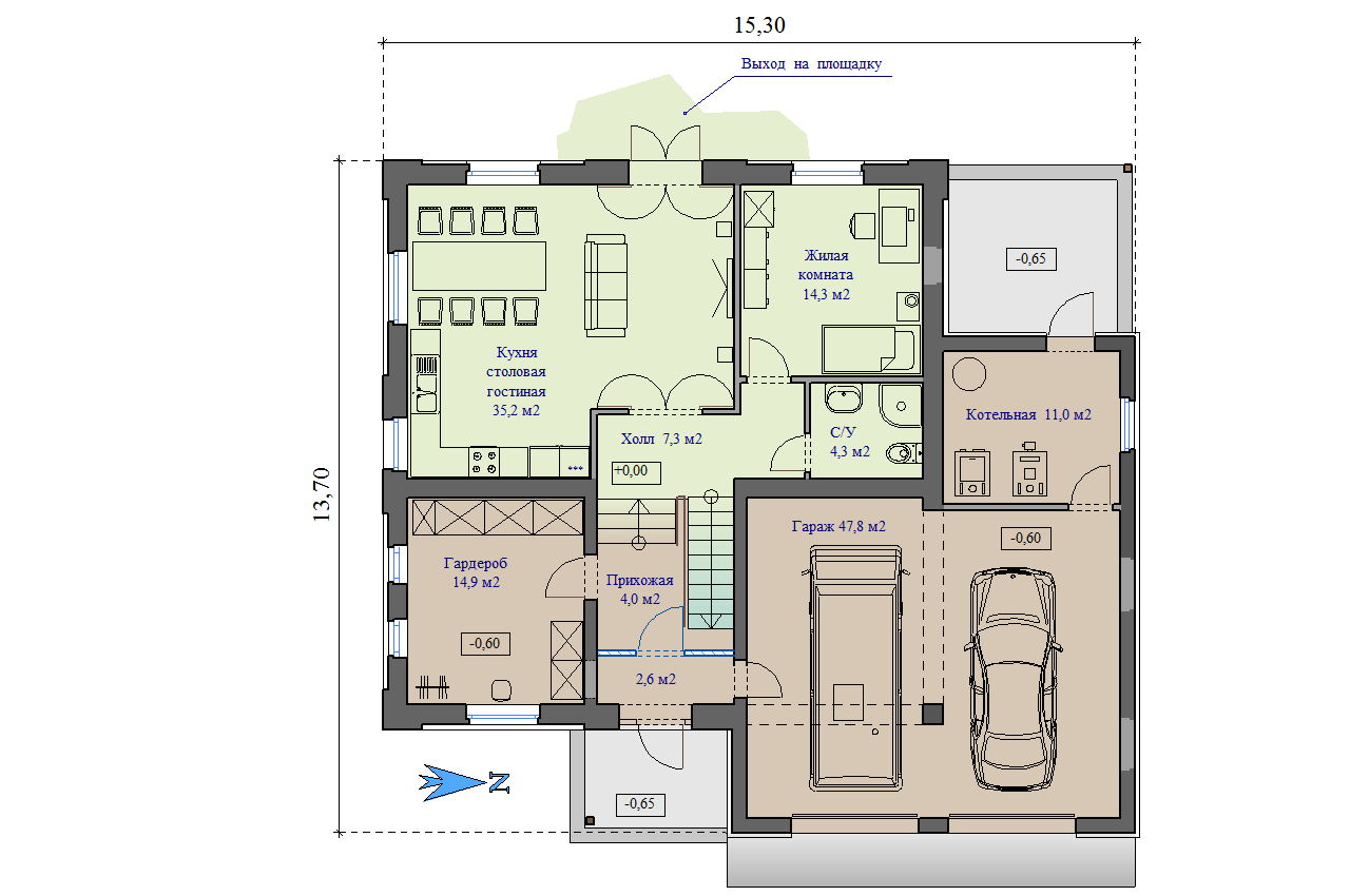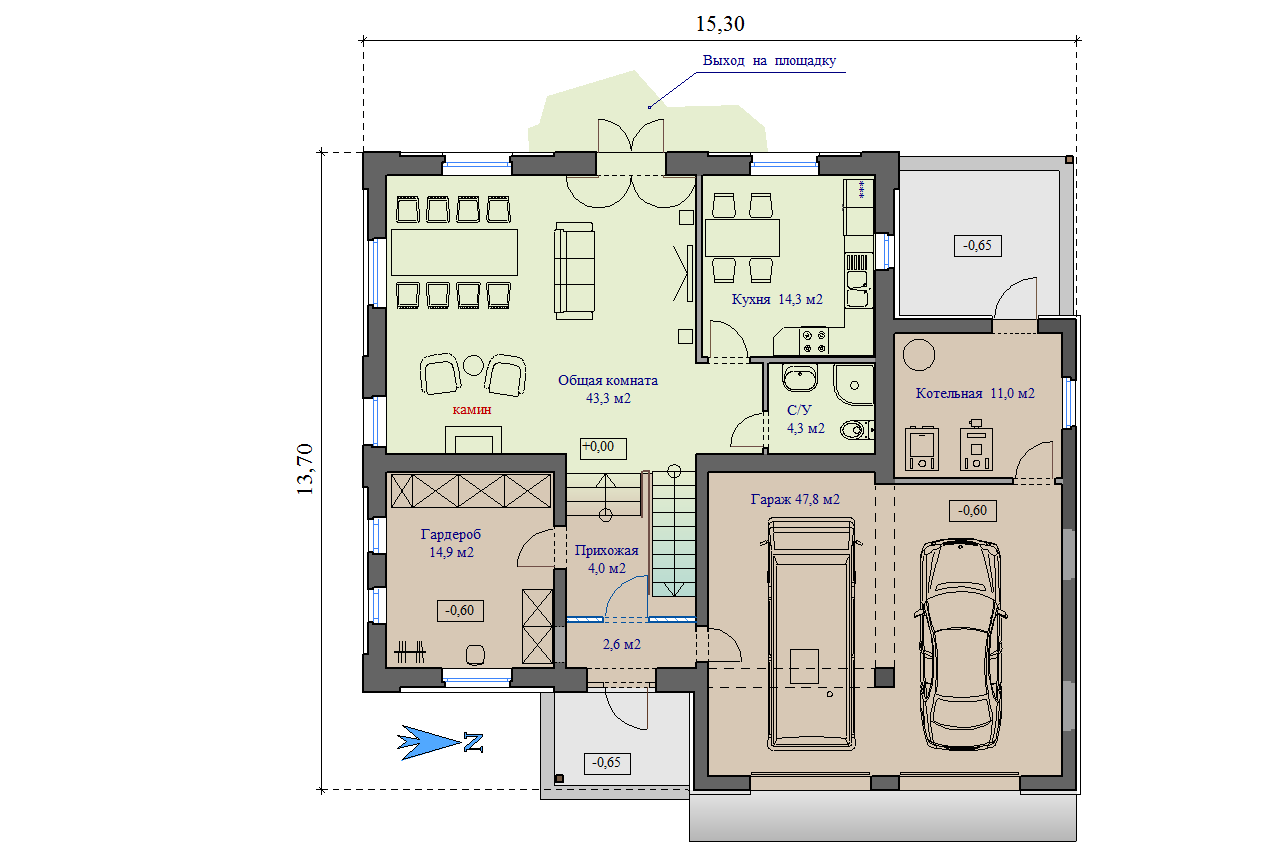 Габариты дома - 13,70 x 15,30 м